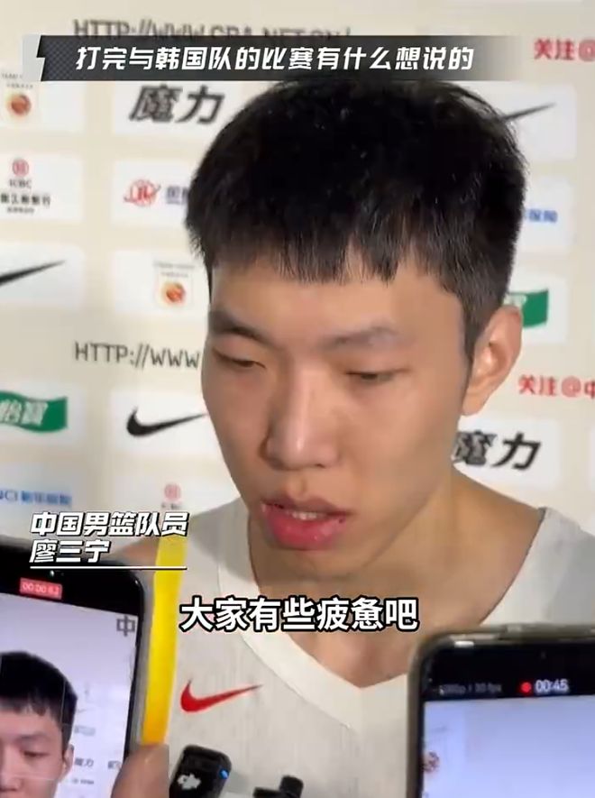廖三宁是这场比赛后卫线唯一正常的那个,他赛前的采访就知道他多么的清醒:“首先还是准备关注韩国队的外线吧,因为他们确实是以外线三分为主的一个球队,这次我们睿哥不在但是也补了外线进来,可能需要我们更多地给他们外线施压吧。”