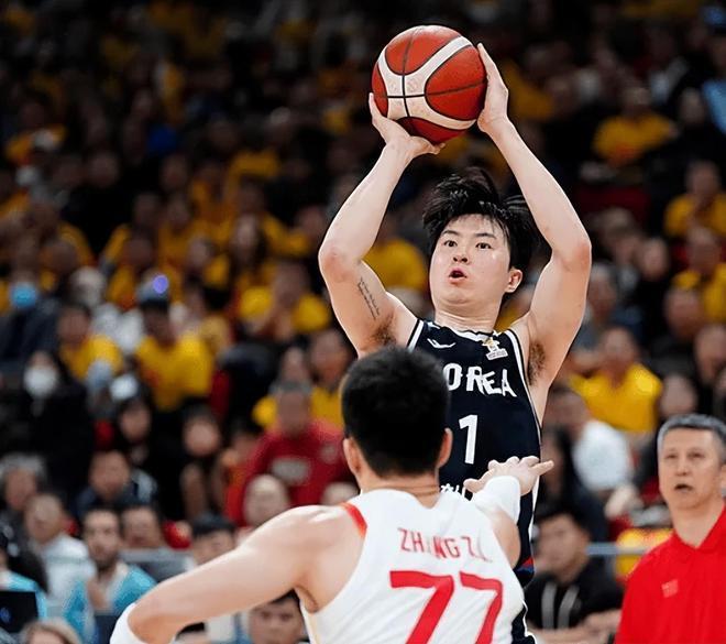 反观韩国队,他们抓住了中国队进攻停滞的绝佳机会,由球员李贤重发起了猛烈的攻势,在短短几分钟内,连续命中4记三分球。他的三分球如同致命的武器,一次次刺痛着中国队的防线。而此时的中国队,防守端似乎有些措手不及,未能及时有效地限制住李贤重的发挥。在这关键时刻,年轻球员廖三宁挺身而出。他凭借着自己出色的速度和突破能力,连续突破韩国队的防线,为中国队打破了得分荒,成功止血。但即便如此,首节比赛结束时,中国队还是以落后8分的劣势暂时落后。