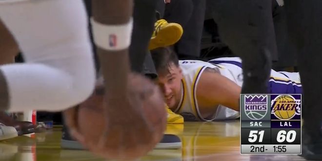 大帽阿赞+倒地救球!东契奇34+7扫漏洞骂名 湖人基本盘还得看他