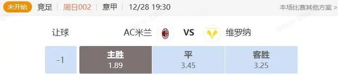 竞足 周日002 意甲 AC米兰VS维罗纳