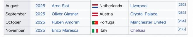 接下来的两位月最佳主帅更是倒霉,直接丢掉了工作——马雷斯卡赢得了10月最佳教练奖,但在1月1日被切尔西俱乐部解雇,而阿莫林则是11月最佳教练奖的得主,他在1月5日被解雇,根据此前媒体的报道,两人都与各自俱乐部的管理层出现了矛盾。