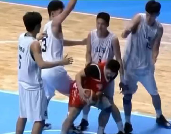 给力!广东队1米80小个子,面对4个山东队大个子, 摘下篮板