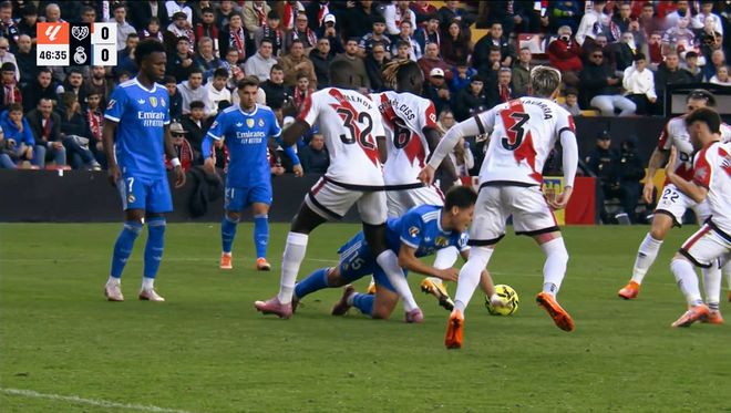 虽然实力相差悬殊,但是开场之后巴列卡诺的节奏和攻势都不弱,与强大的皇家马德里形成对攻的局面。贝林厄姆、姆巴佩利用出色的个人能力,面对巴列卡诺局部围抢,效果非常显著。