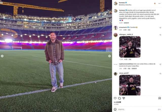 而在夜访诺坎普之后,梅西也在社交媒体上发表了自己在诺坎普拍下的一些照片,并配上了一段令人遐想的文字,他写道,“昨晚回到了让我魂牵梦绕的地方,希望有天我能回来,而不仅是以球员身份告别”。也正是这段话,引发了不少球迷和媒体的猜测,不少媒体和球迷都认为这段话是梅西在向外界表示,自己希望能够重新回到诺坎普的想法,并且他也希望将这件事变成现实。