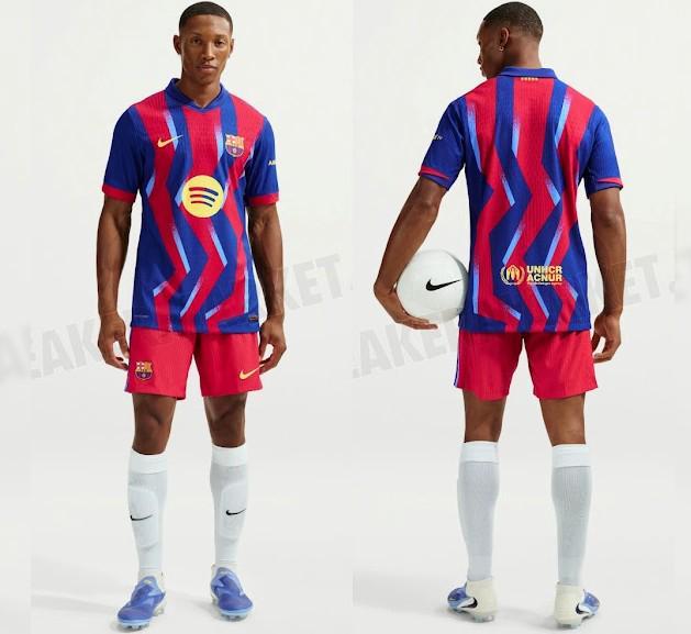 巴萨本赛季国家德比第四球衣谍照:锯齿条纹纪念05年国家德比