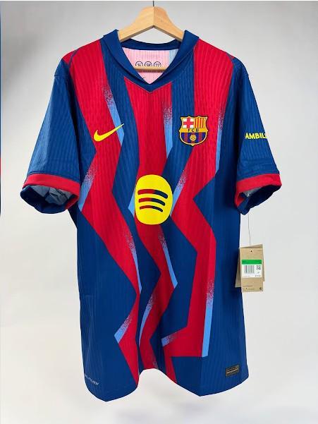据报道,巴萨25-26赛季国家德比球衣将是为了纪念球队在2005年以3-0战胜皇马的辉煌表现,锯齿状条纹代表了埃托奥和罗纳尔迪尼奥各进球的射门路径。
